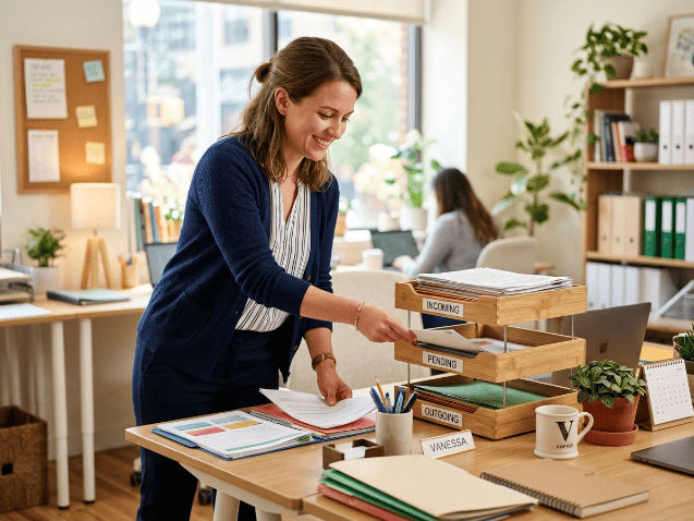 L’astuce de pro : Si vous avez des enfants ou un conjoint qui utilise aussi le bureau, mettez une petite bannette « À dispatcher » tout en haut de la pile. C’est là qu’on met tout ce qui ne vous concerne pas directement. Comme ça, votre espace reste pur et vous ne gérez que ce qui vous incombe. C’est magique pour éviter les disputes sur « qui a laissé traîner ce courrier ? ».